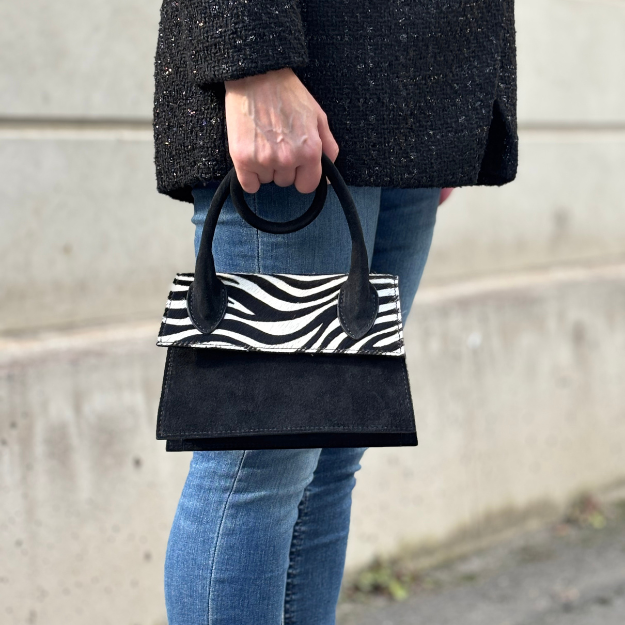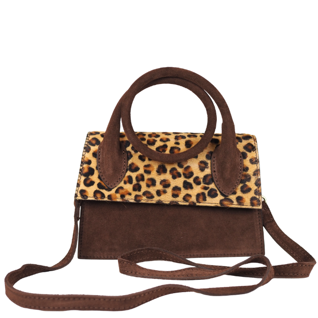 Marlon Kala Round on täydellinen valinta sinulle! Tämä laukku on valmistettu korkealaatuisesta aidosta nahasta sekä leopardi- ja seeprakuosisesta karvasta Italian Firenzessä, mikä takaa kestävyyden ja tyylikkyyden yhdistelmän.