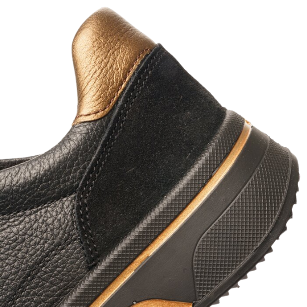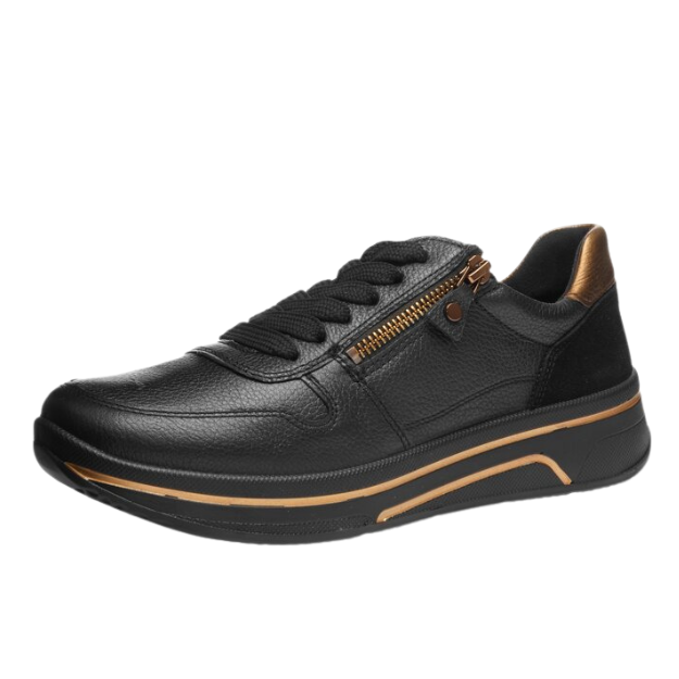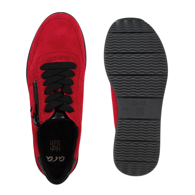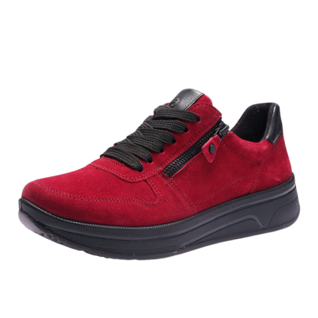 Sporttiset Aran Sapporo sneakerit upeaa tummanpunaista mokkanahkaa, yhdistettynä mustaan pohjaan. Toinen versio on klassista mustaa nahkaa pronssin värisillä yksityiskohdilla.